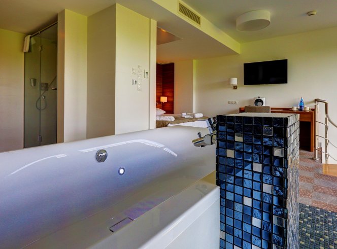 W pokoju dostępne są: szlafroki, ręczniki, minibar, Internet Wi-Fi, TV LCD, telefon, suszarka, sejf.