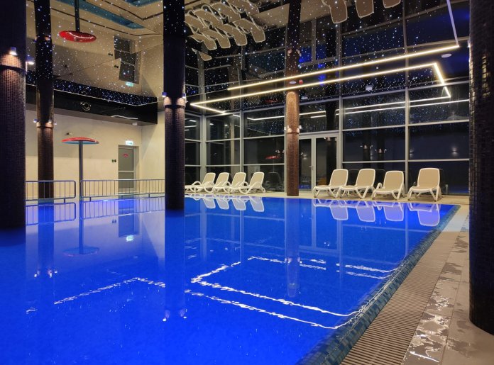 Basen rekreacyjny: Idealny zarówno do spokojnego pływania, jak i wodnego relaksu. Nowoczesny design i nastrojowe oświetlenie tworzą wyjątkowy klimat.